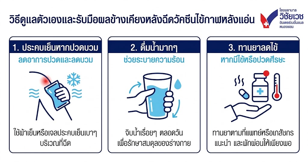 การดูแลตัวเองหลังรับวัคซีนเป็นเรื่องง่าย อาการปวดบวมสามารถบรรเทาได้ด้วยการประคบเย็น