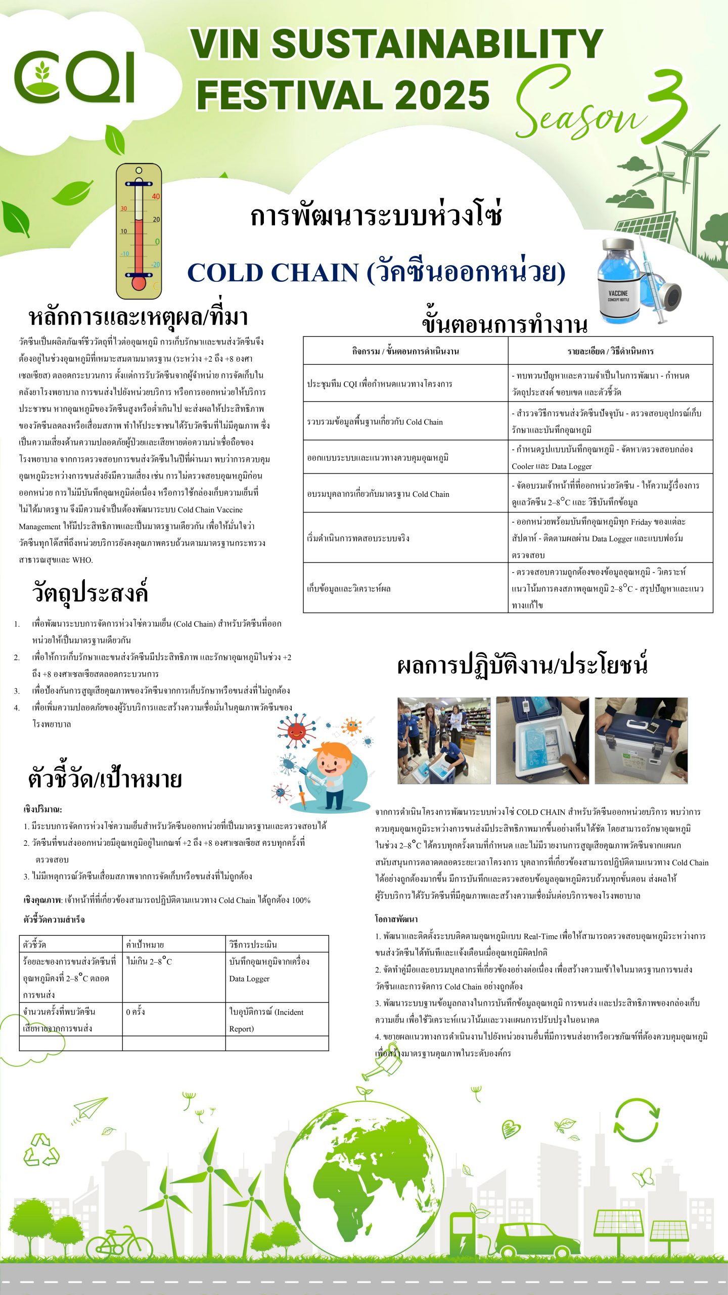 - โครงการ “การพัฒนาระบบห่วงโซ่ COLD CHAIN (วัคซีนออกหน่วย)” โดย แผนกคลังยาและเวชภัณฑ์