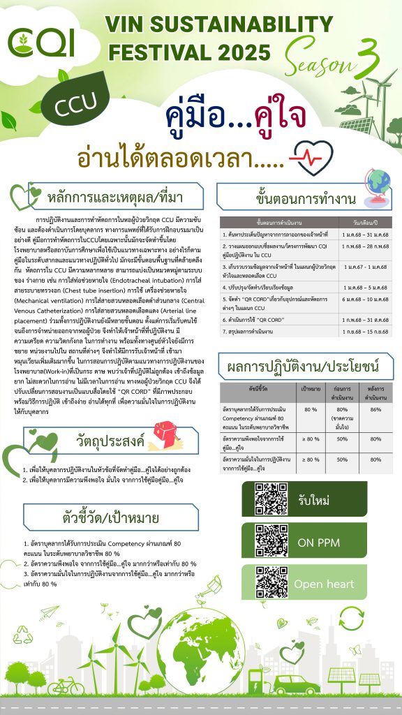 - โครงการ “คู่มือ คู่ใจ อ่านได้ตลอดเวลา” โดย แผนก CCU