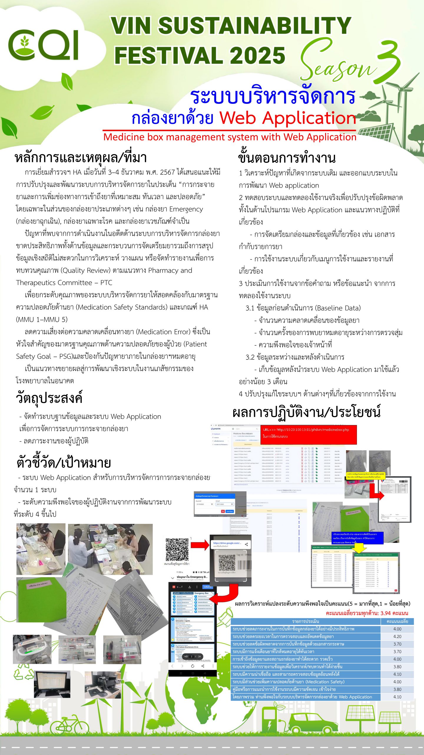 - โครงการ “ระบบบริหารจัดการกล่องยาด้วย Web Application” โดย แผนกเภสัชกรรม