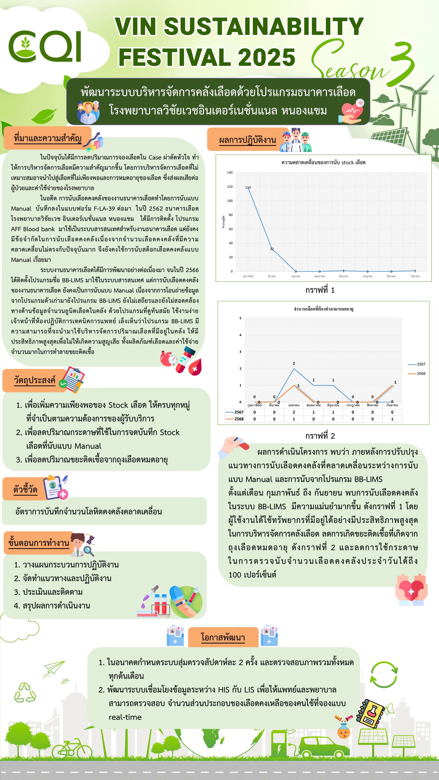 - โครงการ “พัฒนาระบบบริหารจัดการคลังเลือดด้วยโปรแกรมธนาคารเลือดฯ” โดย แผนกห้องปฏิบัติการตรวจวิเคราะห์