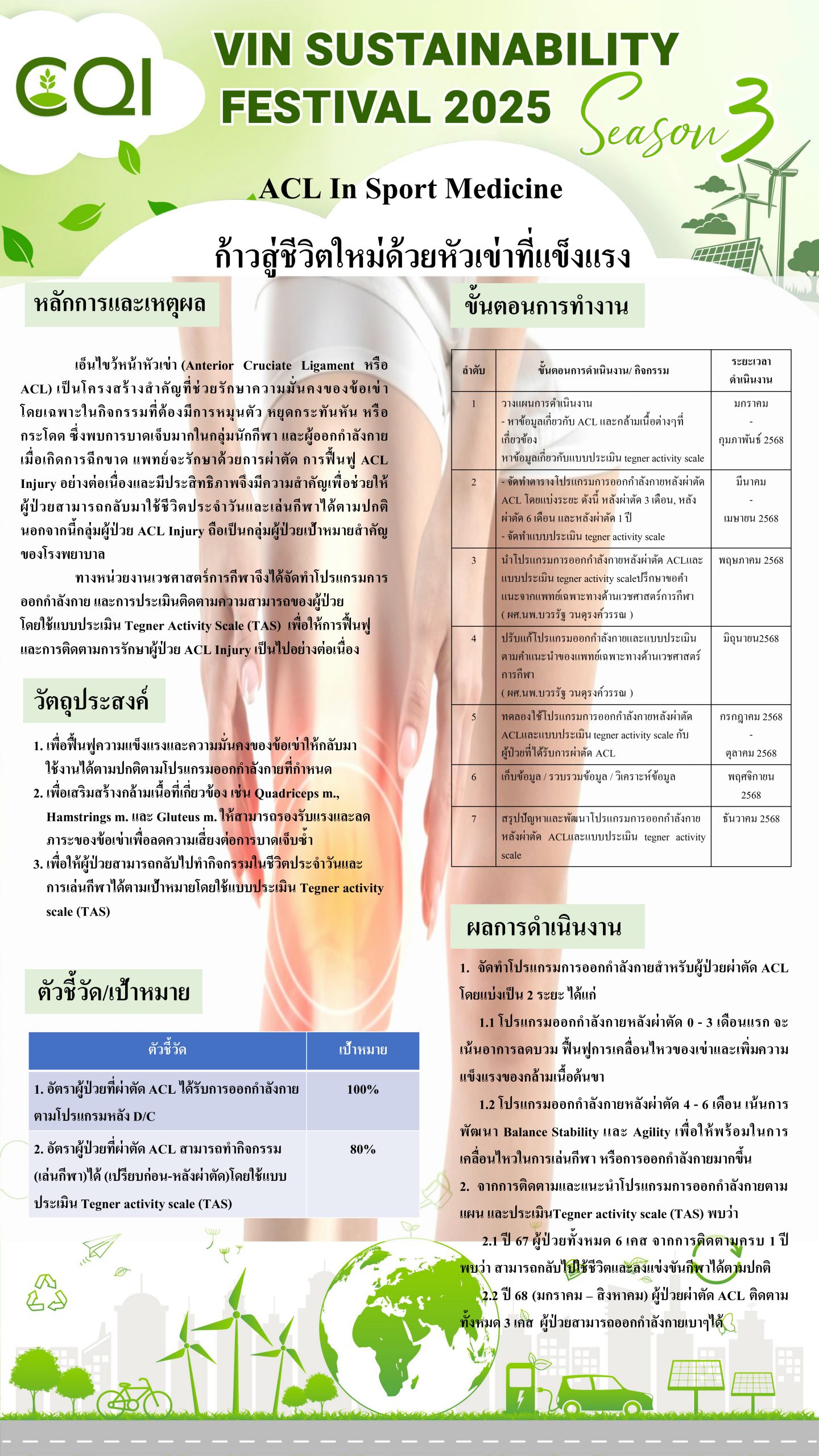 - โครงการ “ACL In Sport Medicine ก้าวสู่ชีวิตใหม่ด้วยหัวเข่าที่แข็งแรง” โดย แผนกเวชศาสตร์การกีฬา