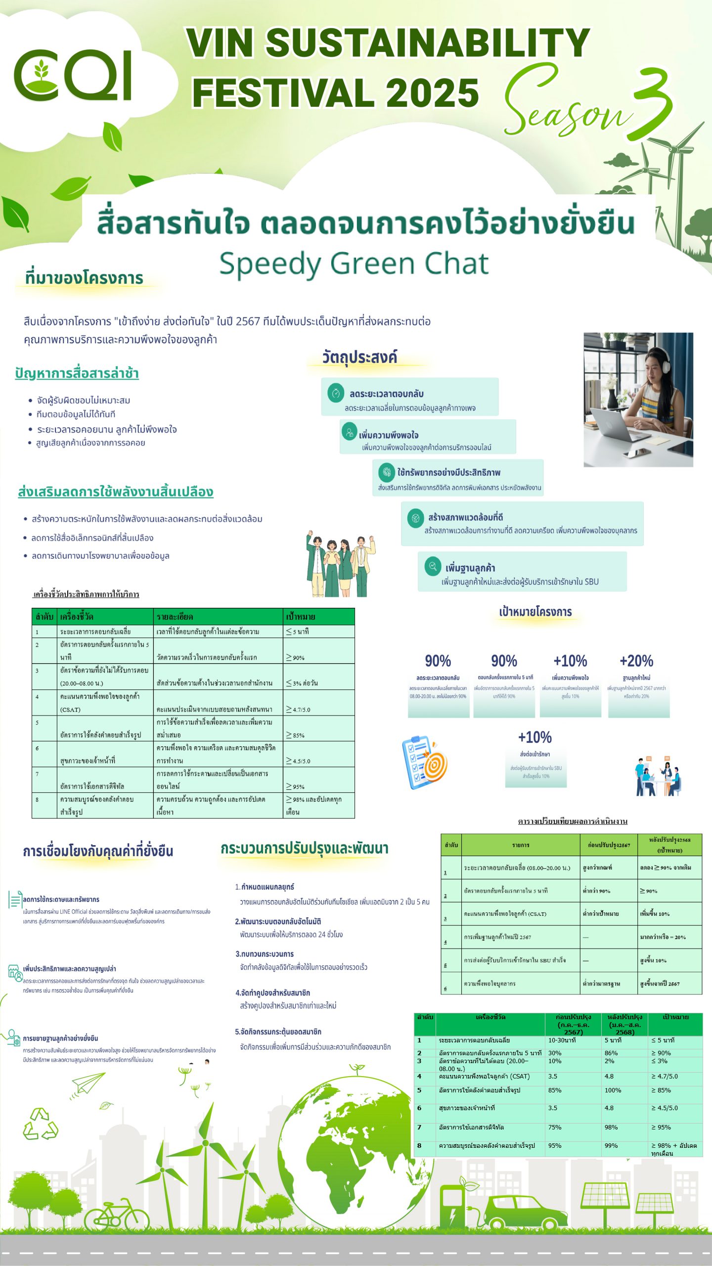 - โครงการ “สื่อสารทันใจ ตลอดจนการคงไว้อย่างยั่งยืน” โดย แผนกลูกค้าสัมพันธ์