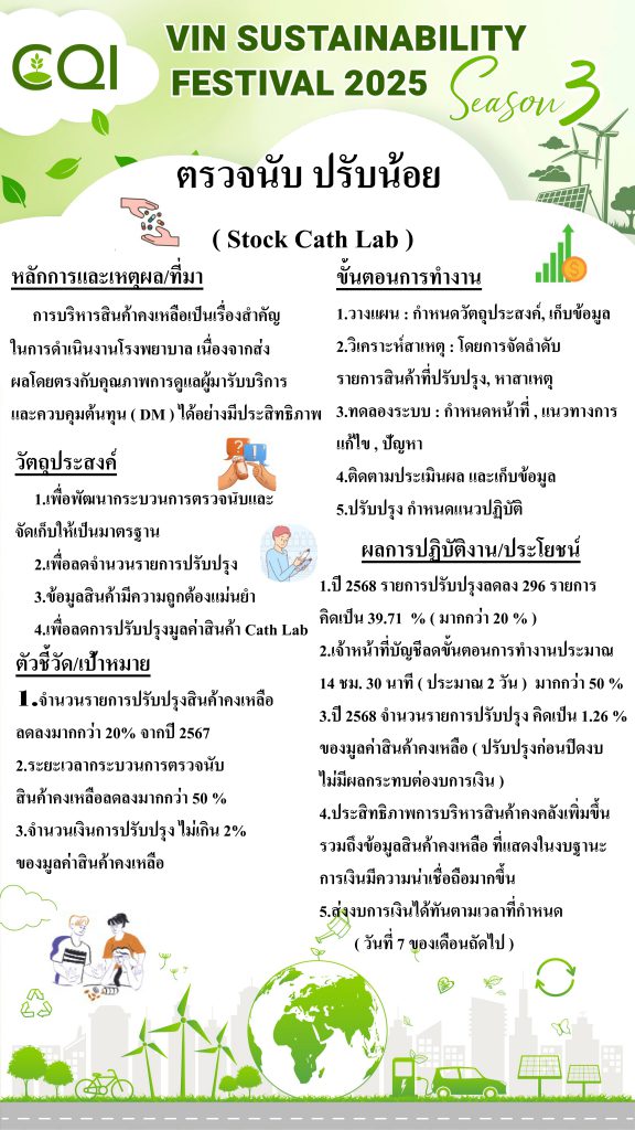 - โครงการ “ตรวจนับ ปรับน้อย (Stock Cath lab)” โดย แผนกบัญชีลูกหนี้