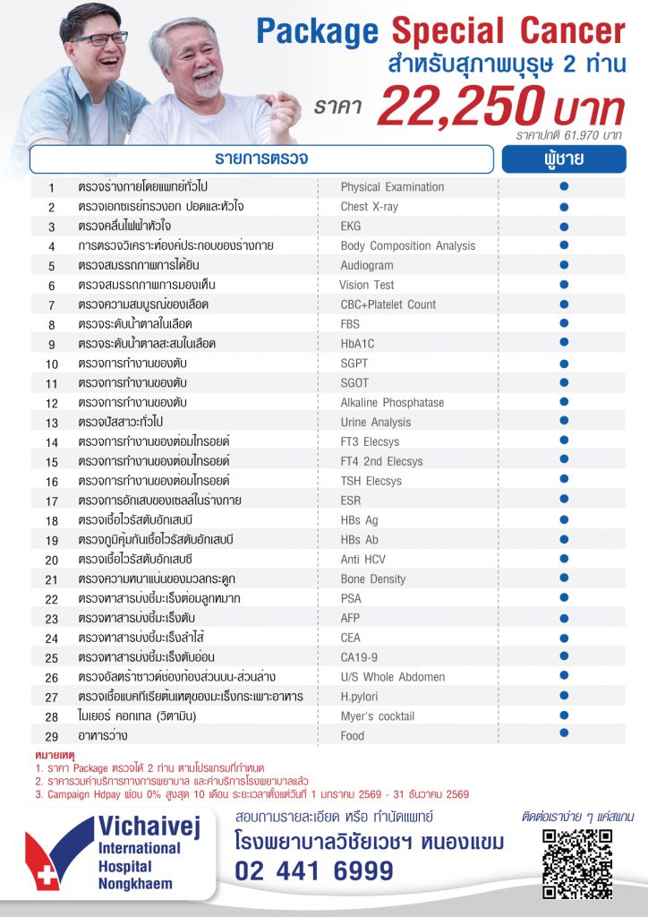 - Package Special Cancer สำหรับสุภาพบุรุษ (ตรวจได้ 2 ท่าน)